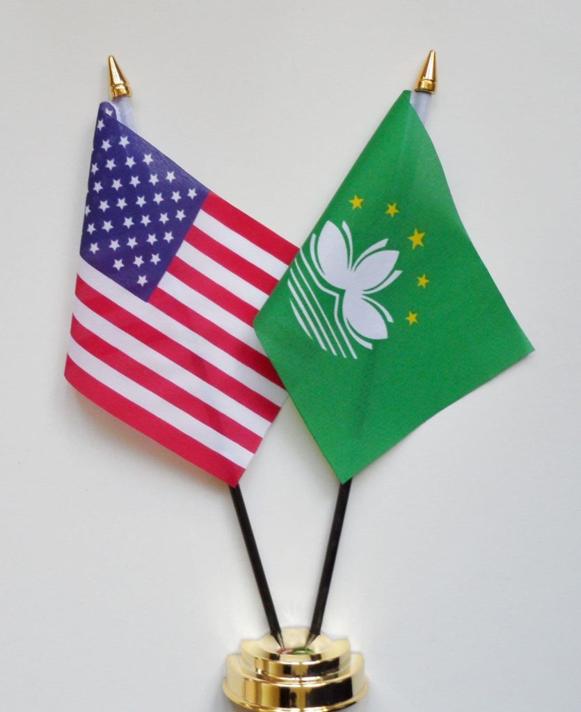 United States of America & China Macau Region Friendship Table Flag