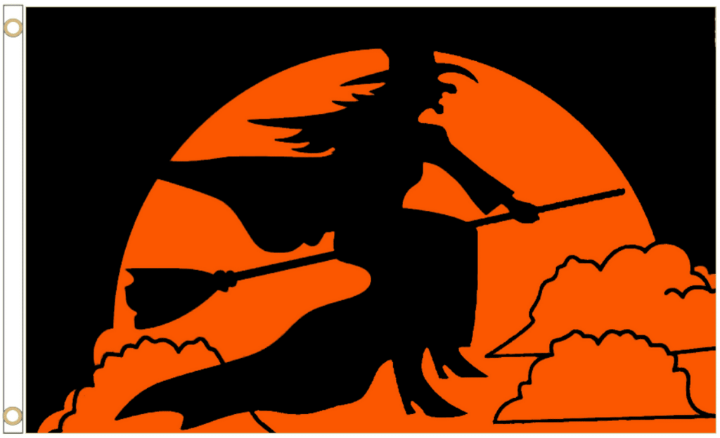 Halloween Witch on Broomstick Polyester 5’x3′ Flag