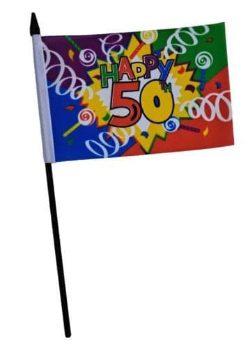 Happy 50th Birthday Medium Hand Flag