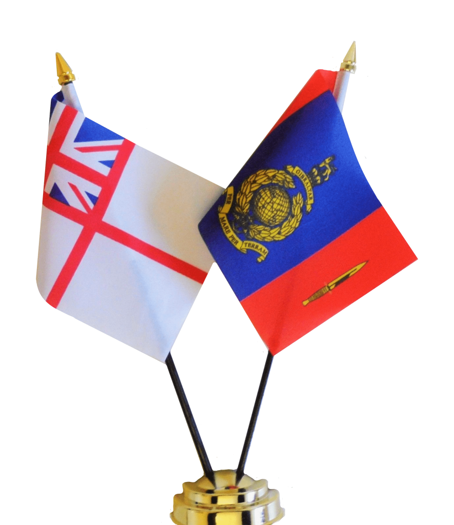 45 Commando Royal Marines RM Condor Arbroath and Royal Navy White Ensign Friendship Table Flag
