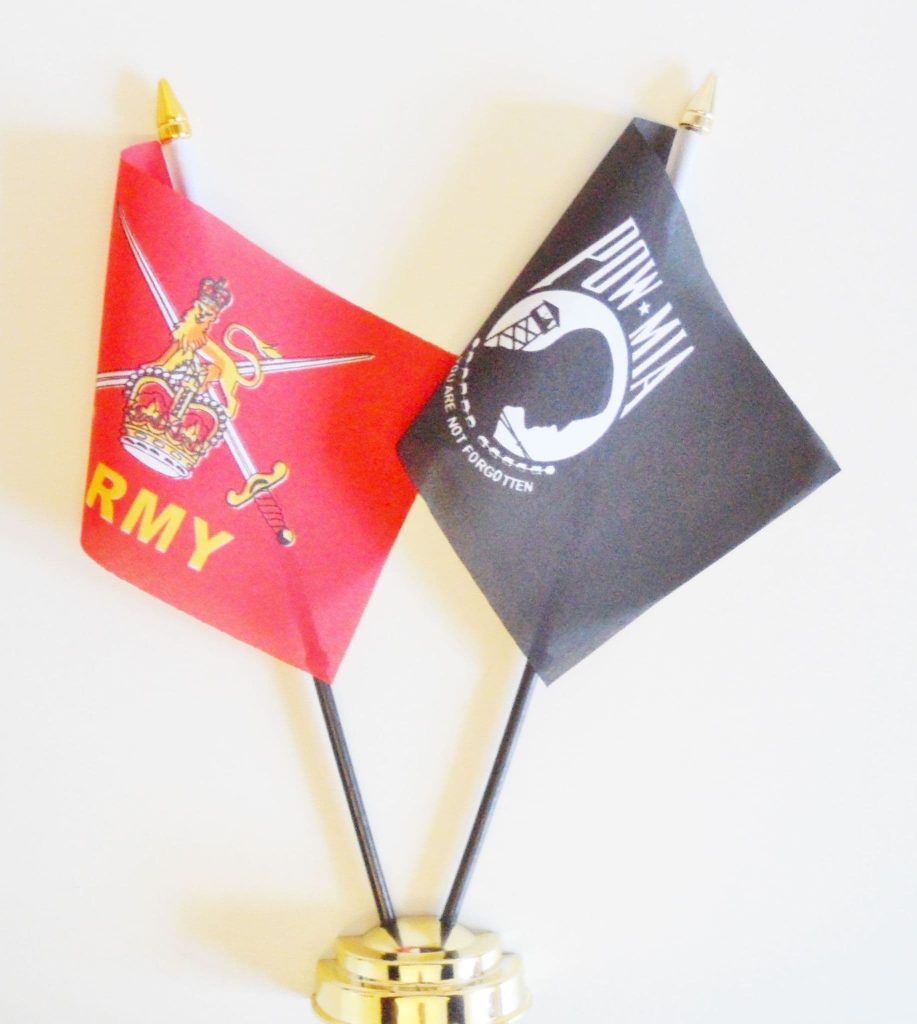 British Army and Prisoner of War Missing in Action POWMIA Friendship Table Flag.