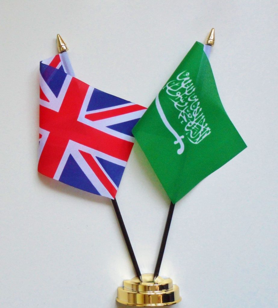 United Kingdom and Saudi Arabia Friendship Table Flag
