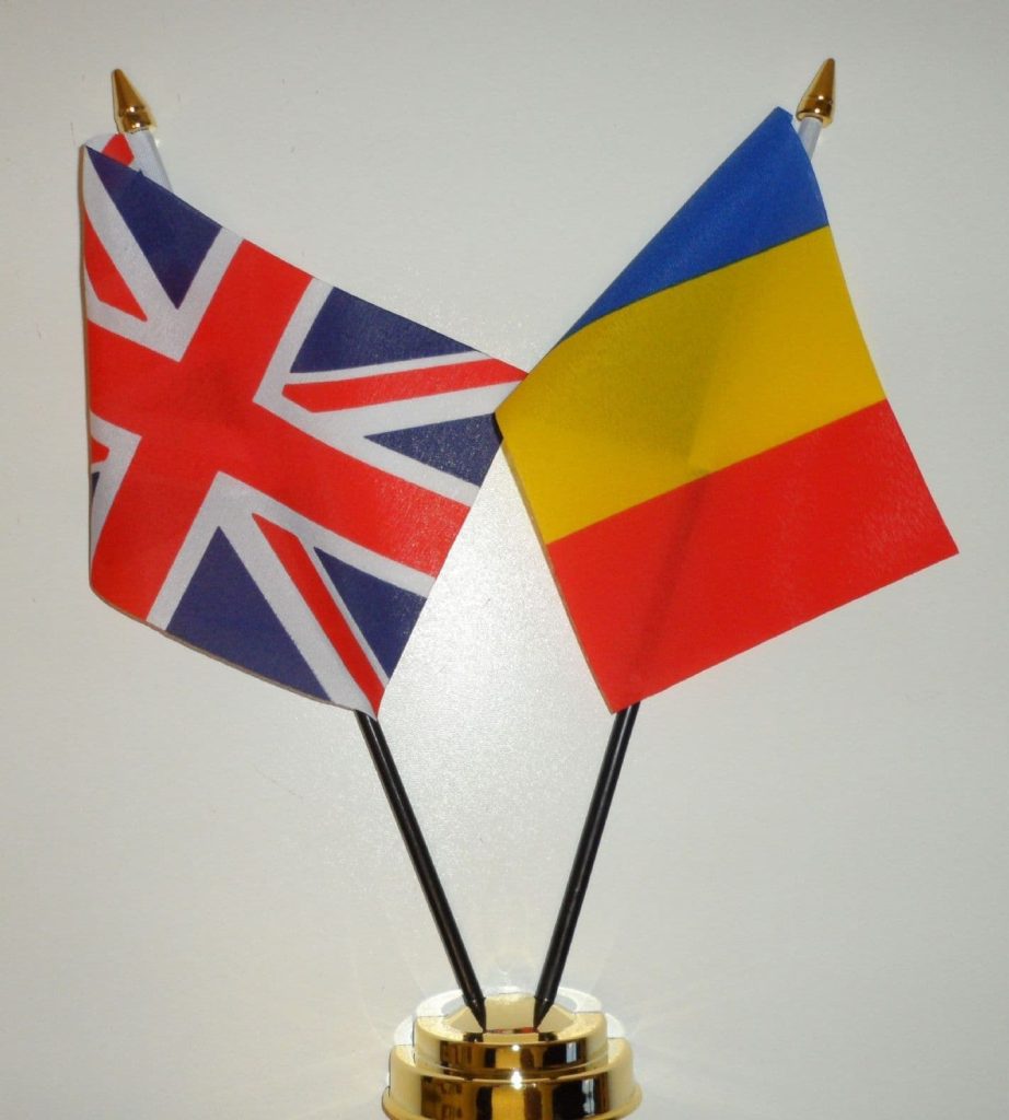 United Kingdom and Romania Friendship Table Flag