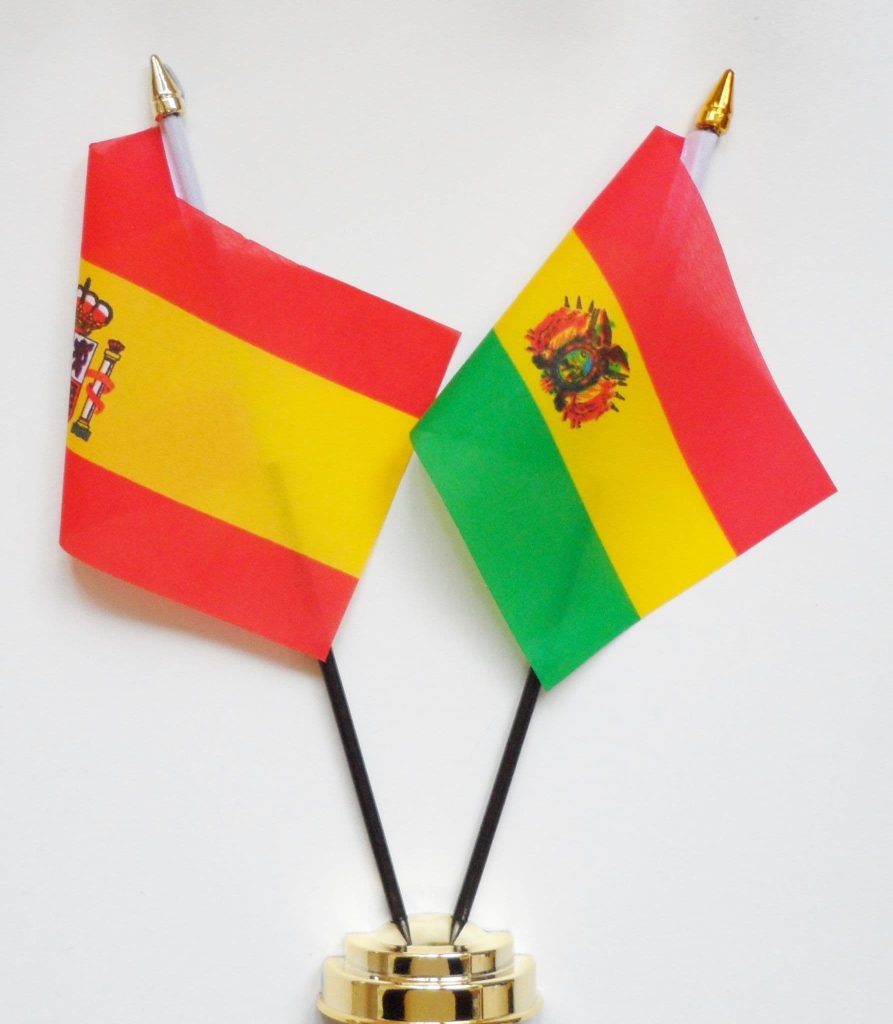 Spain State and Bolivia Friendship Table Flag