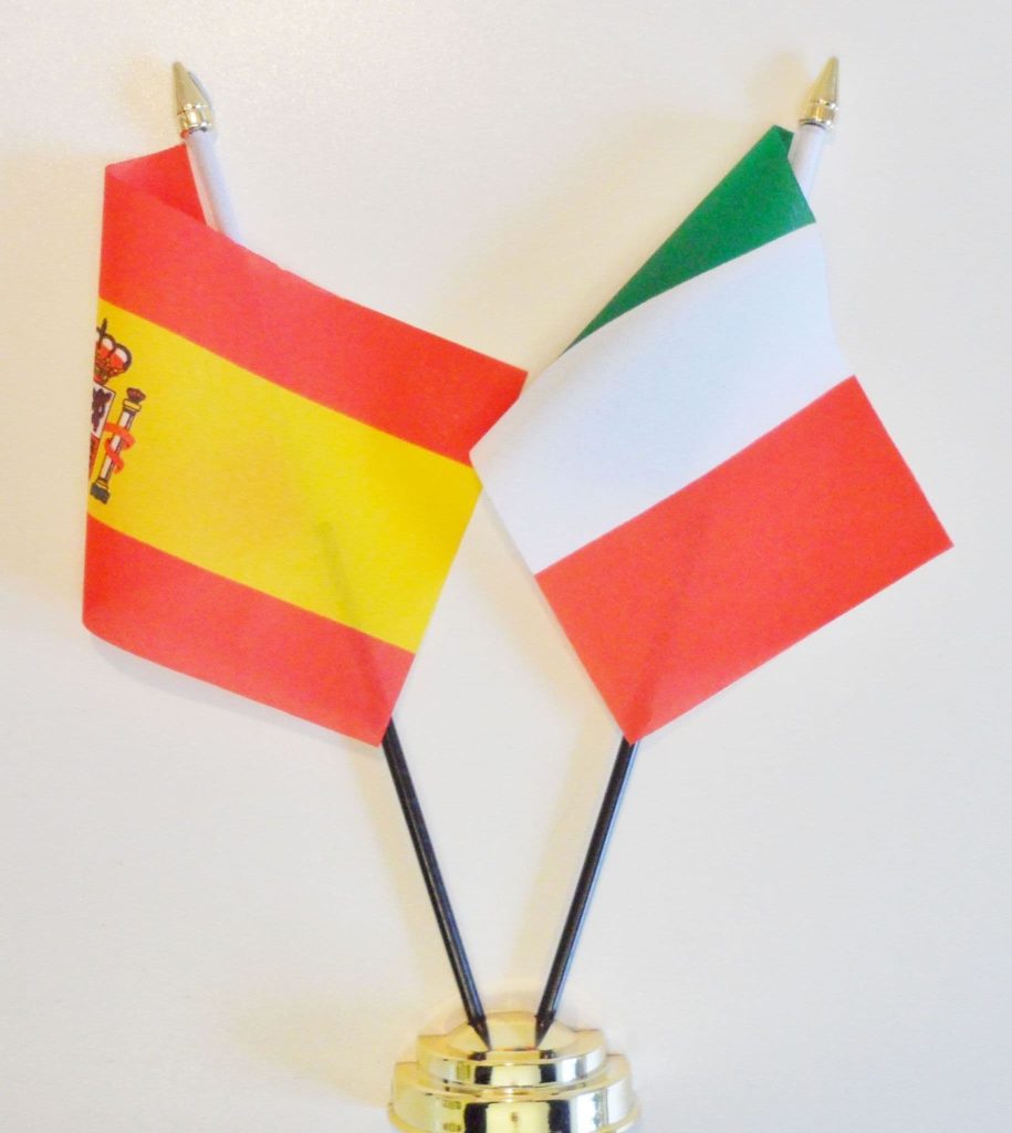 Spain State and Italy Friendship Table Flag