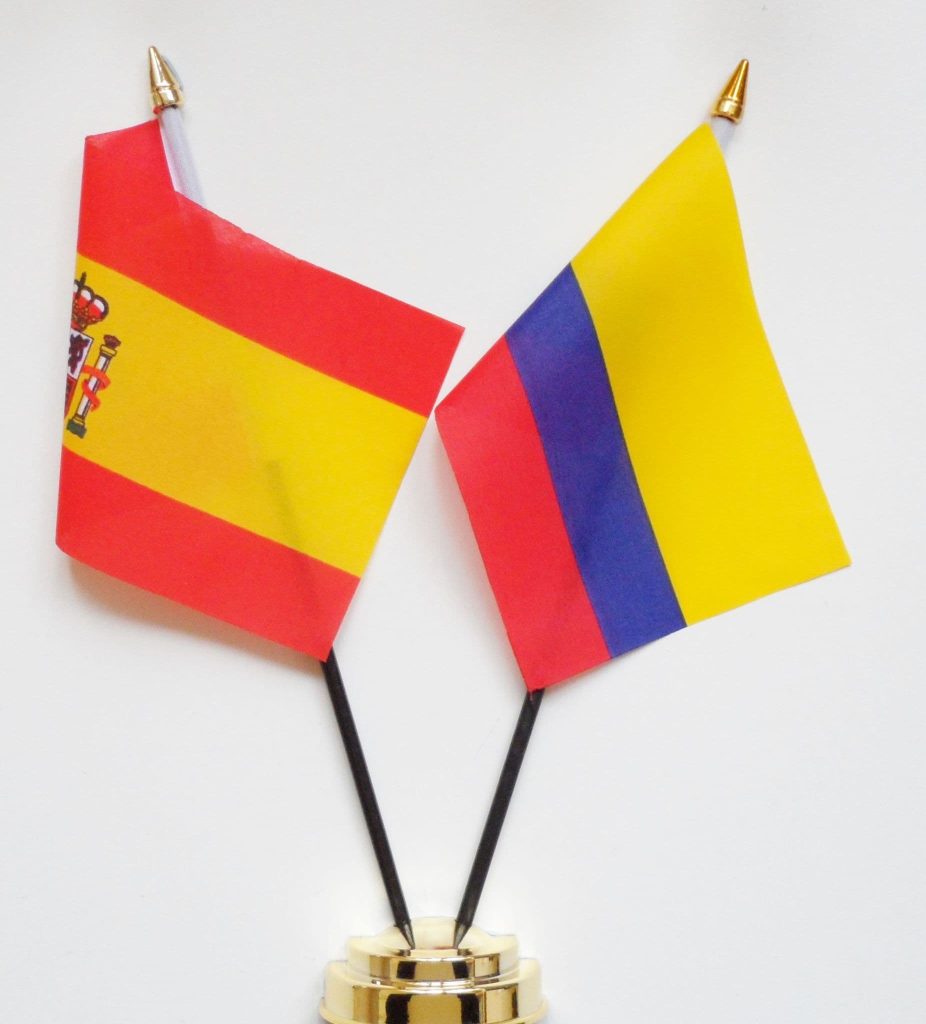 Spain State and Colombia Friendship Table Flag