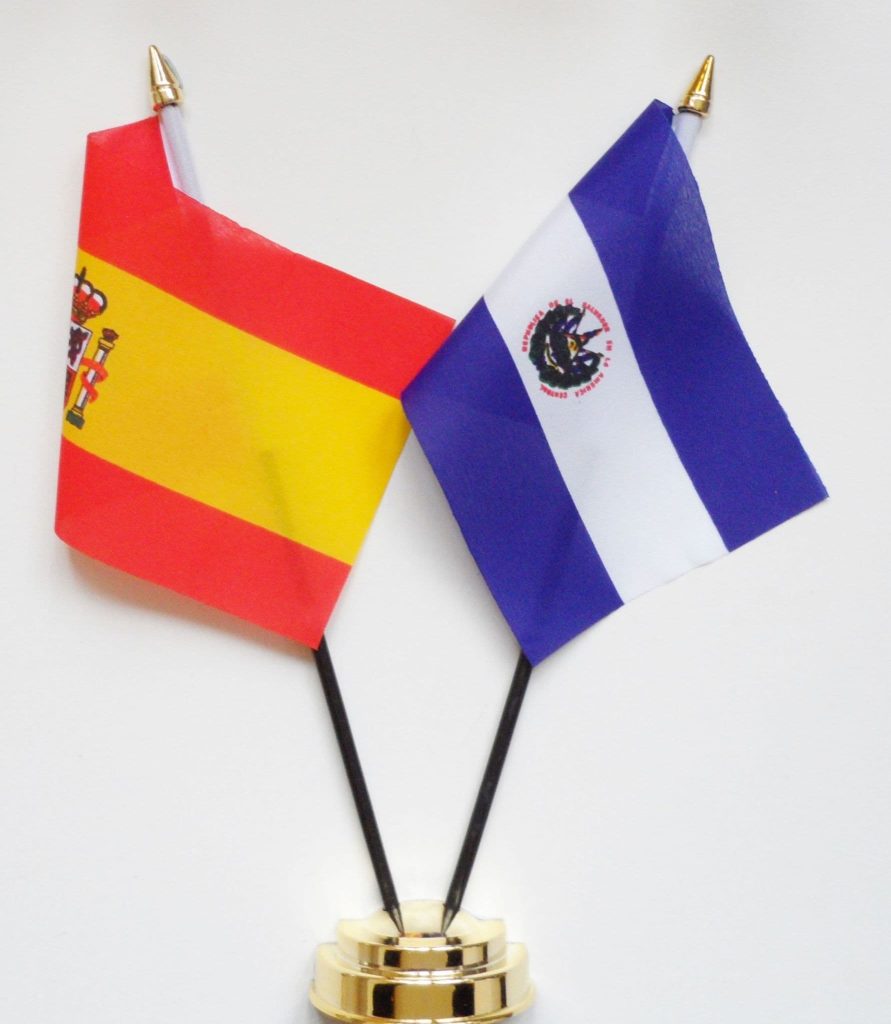 Spain State and El Salvador Friendship Table Flag