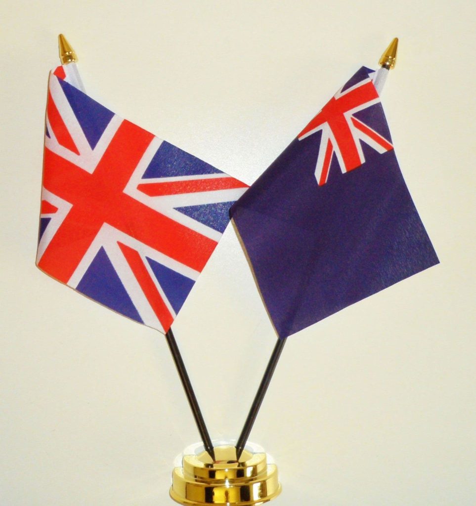 Royal Navy Royal Fleet Auxiliary Blue Ensign and United Kingdom Friendship Table Flag