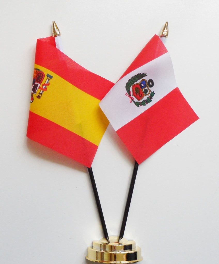 Spain State and Peru Friendship Table Flag