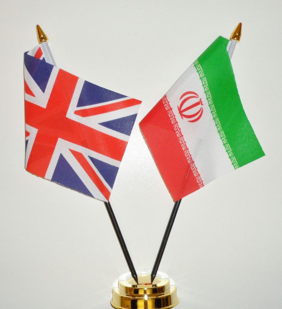 United Kingdom and Iran Friendship Table Flag