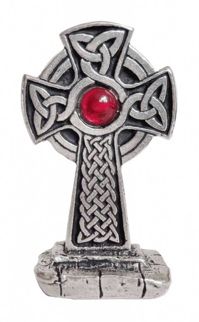 Knotwork Celtic Cross with Stone Small Solid Pewter Ornament – Hand Made in Cornwall