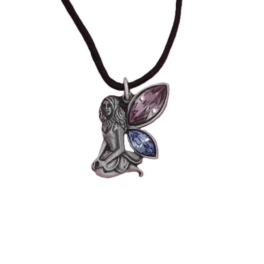 Kneeling Fairy Faerie with Coloured Wings Pewter Pendant – Made in England