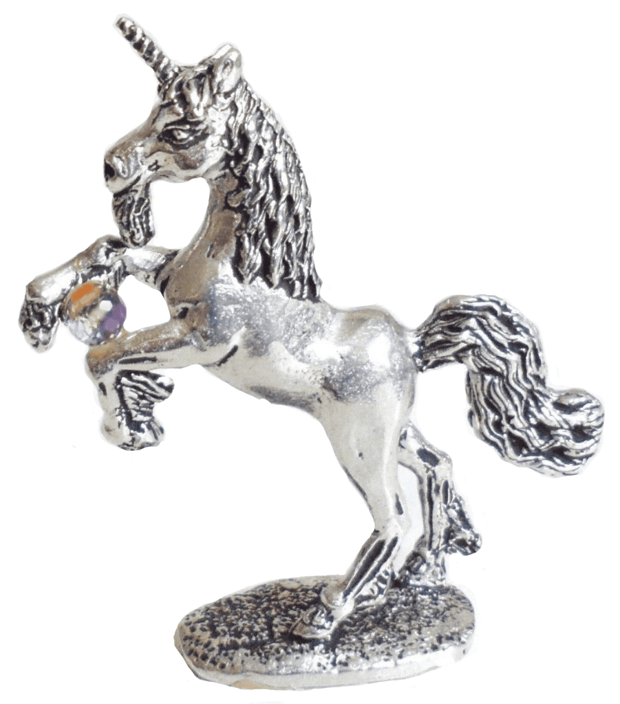 Unicorn with Glass Crystal-Style Ball Solid Pewter Ornament – Hand Made In Cornwall