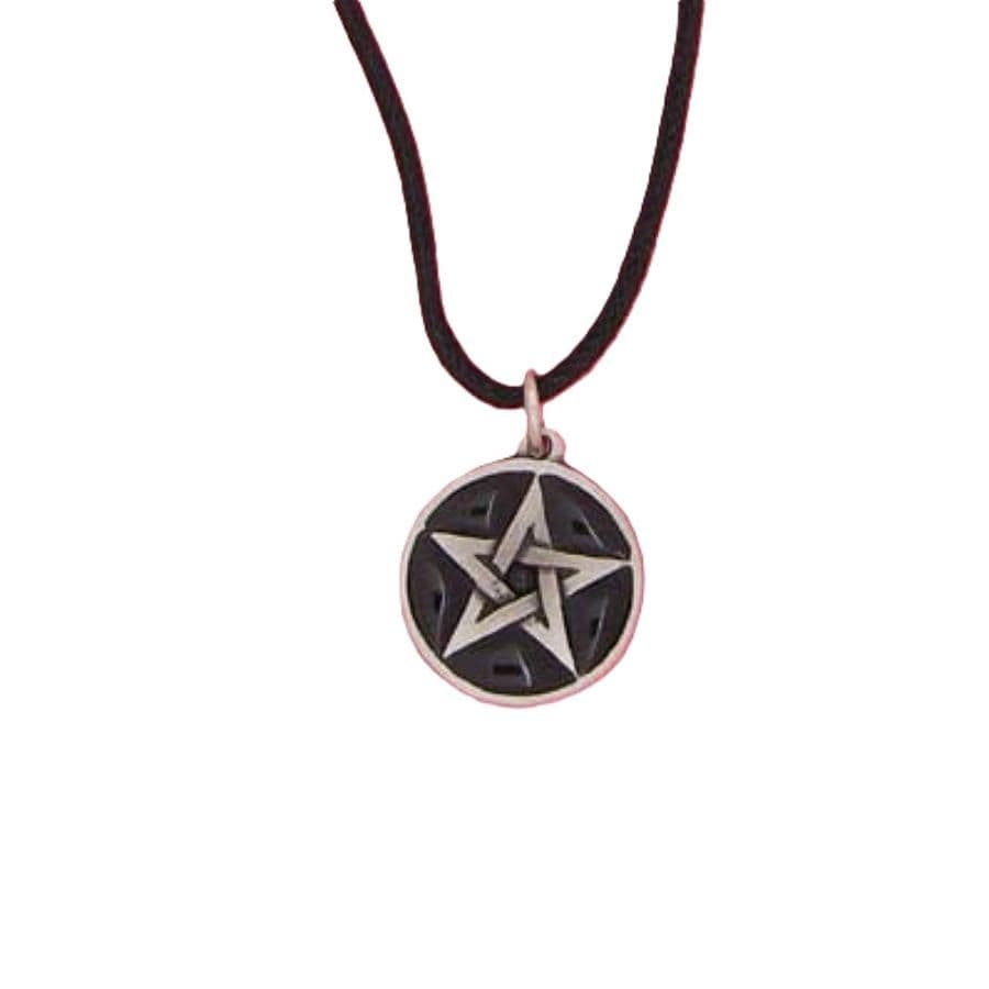 Black Round Pentagram Pewter Pendant – Made in England