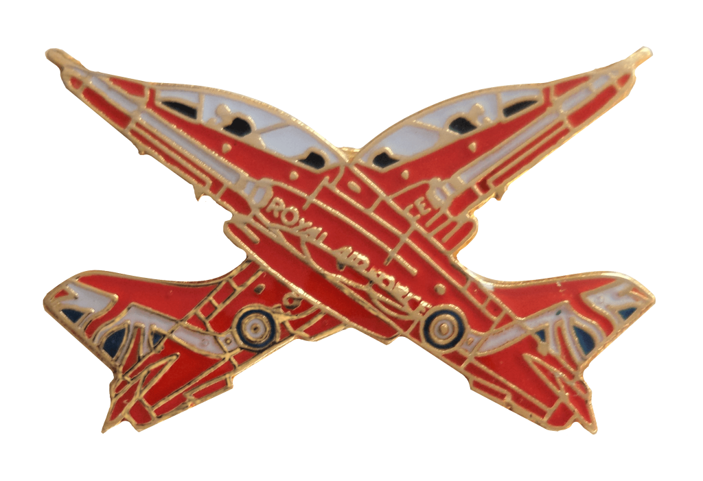 Red Arrrows BAE Systems Hawk T1 2 Aircraft Cross-over Royal Air Force RAF Pin Badge
