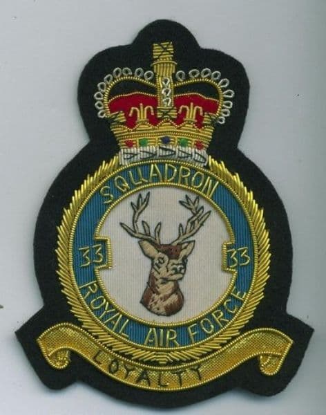 No. 33 Squadron Royal Air Force RAF GOLD WIRED Blazer Embroidered Badge