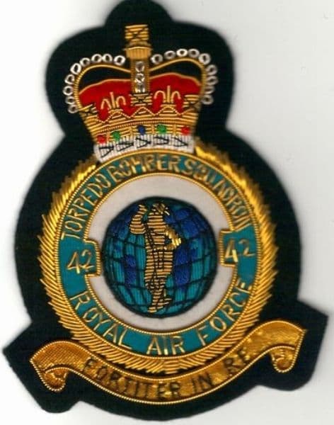 No. 42 Torpedo Bomber Squadron Royal Air Force RAF GOLD WIRED Blazer Embroidered Badge
