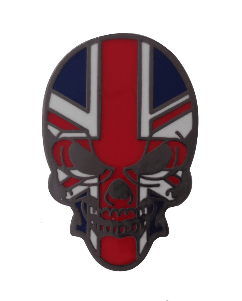 United Kingdom UK Union Jack Skull Shaped Pin Badge