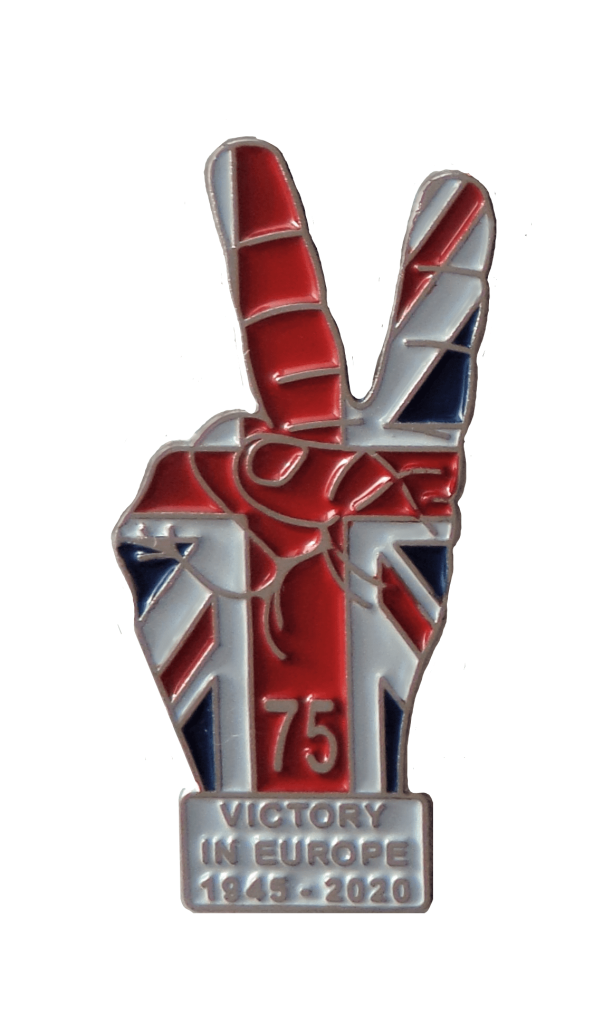 VE Day Victory in Europe 75 Years Victory V Shaped Pin Badge