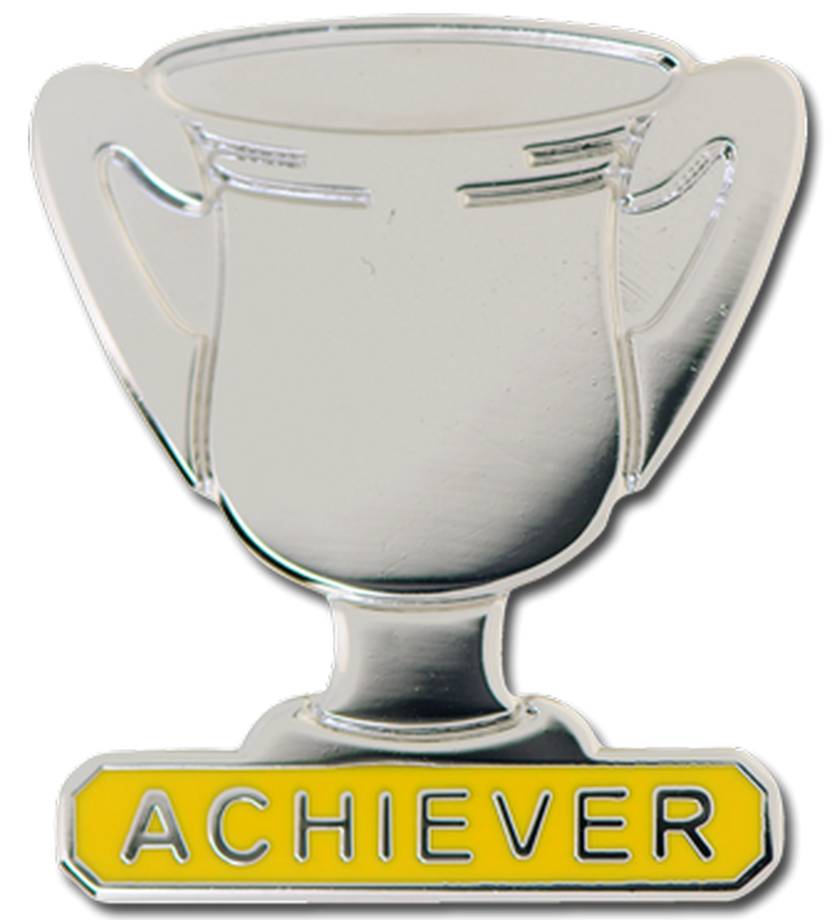 Achiever Trophy Silver and Yellow Pin Badge