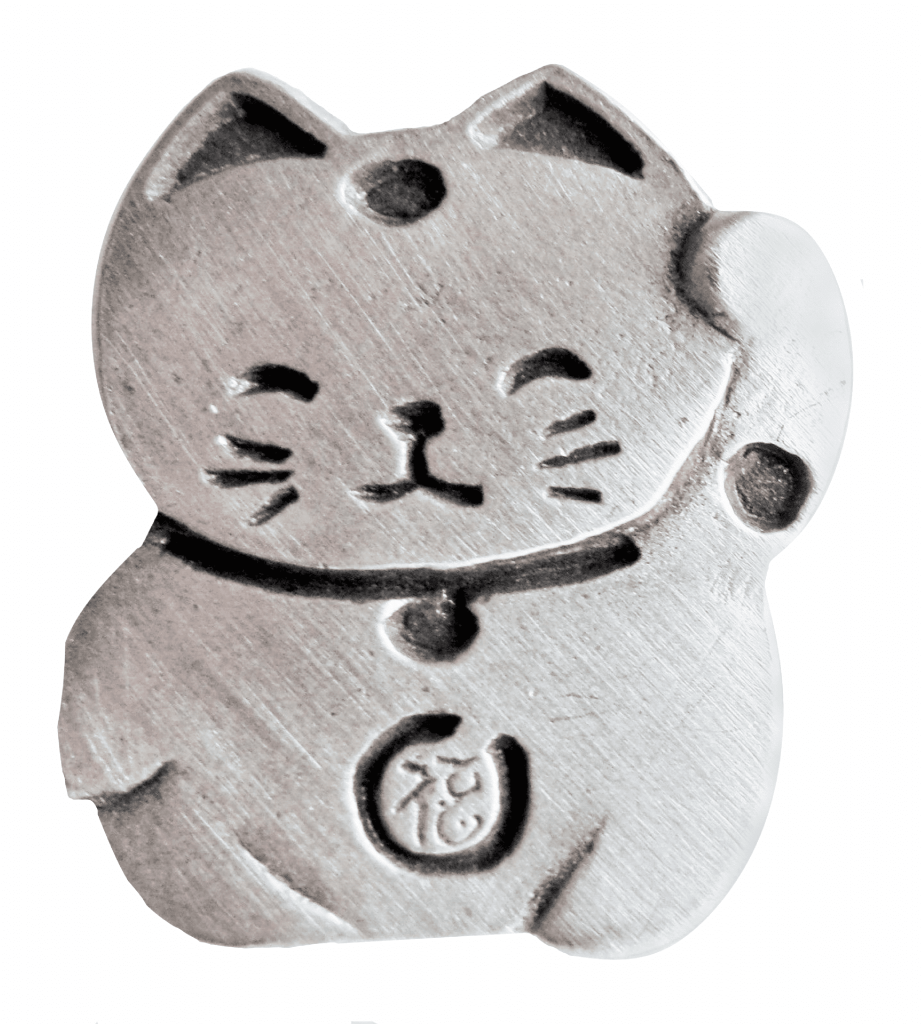 Lucky Beckoning Cat Maneki-neko Pewter Pin Badge