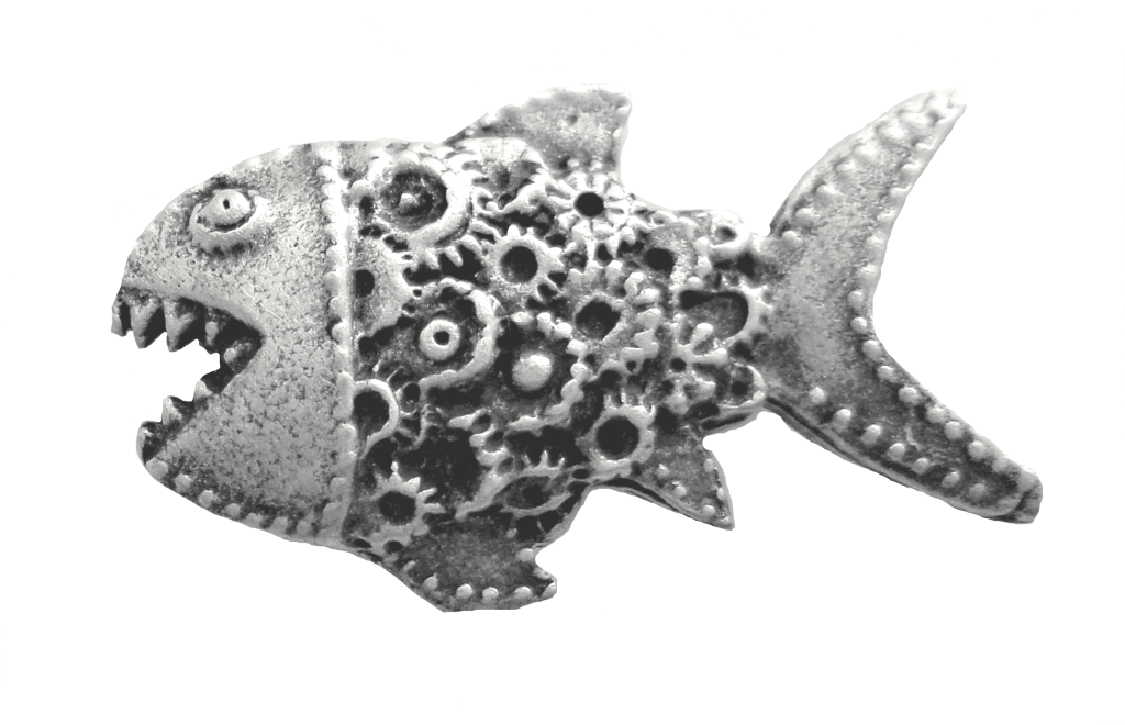 Clockwork Piranha Steampunk Style Fish Pewter Pin Badge
