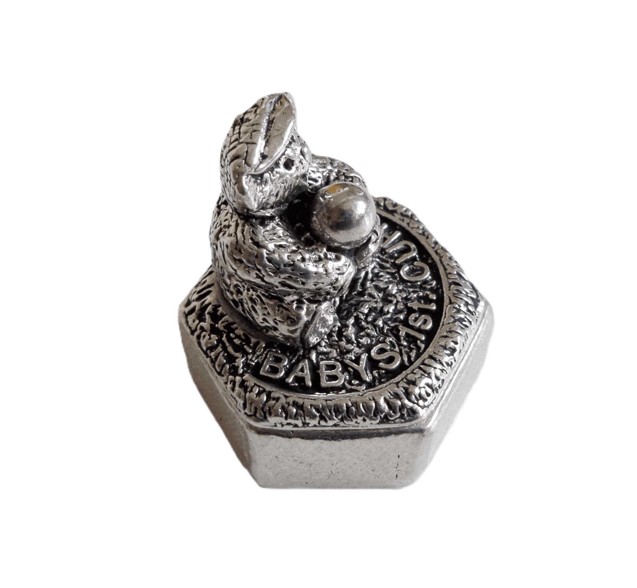 The lid and figurine measures approximately:. Width – 1. 8cm; Depth – 1. 8cm; Height – 2cm. (Width – 0. 7 inches; Depth – 0. 7 inches; Height – 0. 8 inches).. The ‘Made in Cornwall’ scheme protects and promotes local Cornish producers. This accreditation gives buyers the confidence that goods approved by this scheme are genuinely made in Cornwall.. Our exclusive Cornish Pewter is handmade within a small workshop in a garden near Bodmin. Molten pewter is poured into a hand crafted resin mold and spun at high speed to create the stunning details of each ornament. The product is then left to cool for 3 days, allowing the box to strengthen. The final piece is then buffed to ensure a wonderful sheen finish.. There is an option to include a small velvet-style gift pouch with the product – a perfect option to gift this pewter item to a friend of family member..
