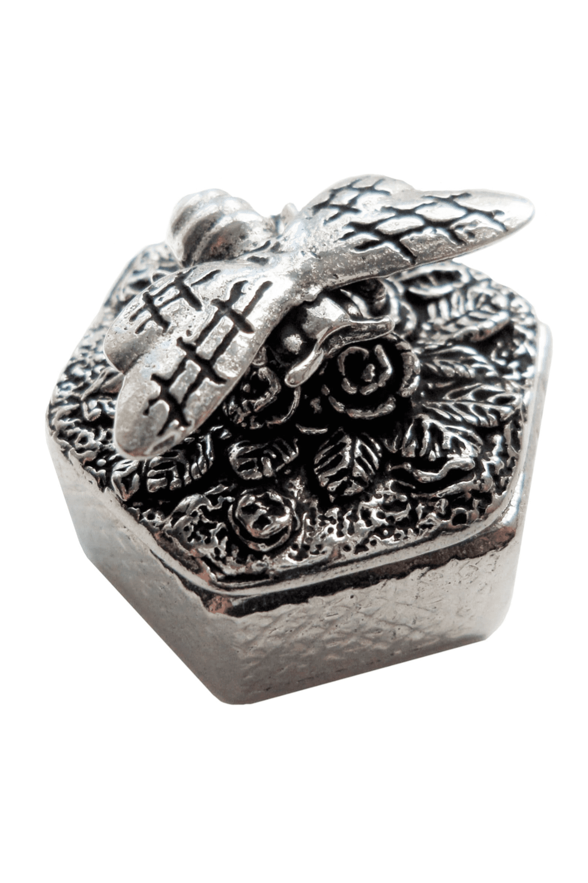 A beautiful hand crafted hexagonal pill/trinket box.