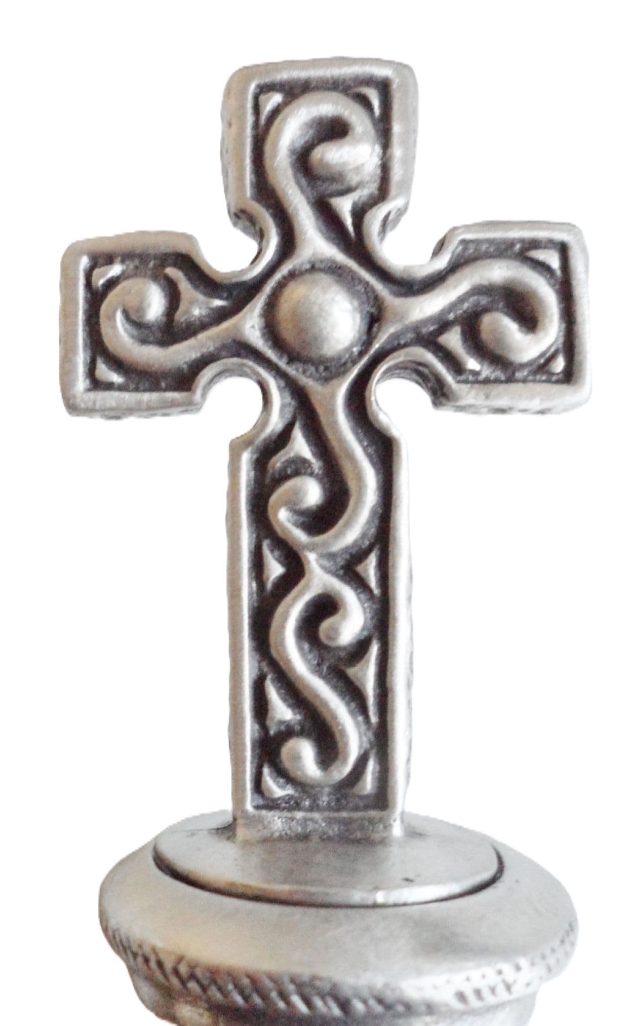 A beautiful hand crafted bottle stopper. Hand made in Hertfordshire using a traditional method. Solid Pewter. Mounted on a standard sized cork. This bottle stopper measures approximately (excluding cork):. Width – 3cm; Depth – 0. 4cm; Height – 5. 2cm. (Width – 1. 5 inches; Depth – 0. 1 inch; Height – 2 inches). There is an option to include a small velvet-style gift pouch with the product – a perfect option to gift this pewter item to a friend of family member.