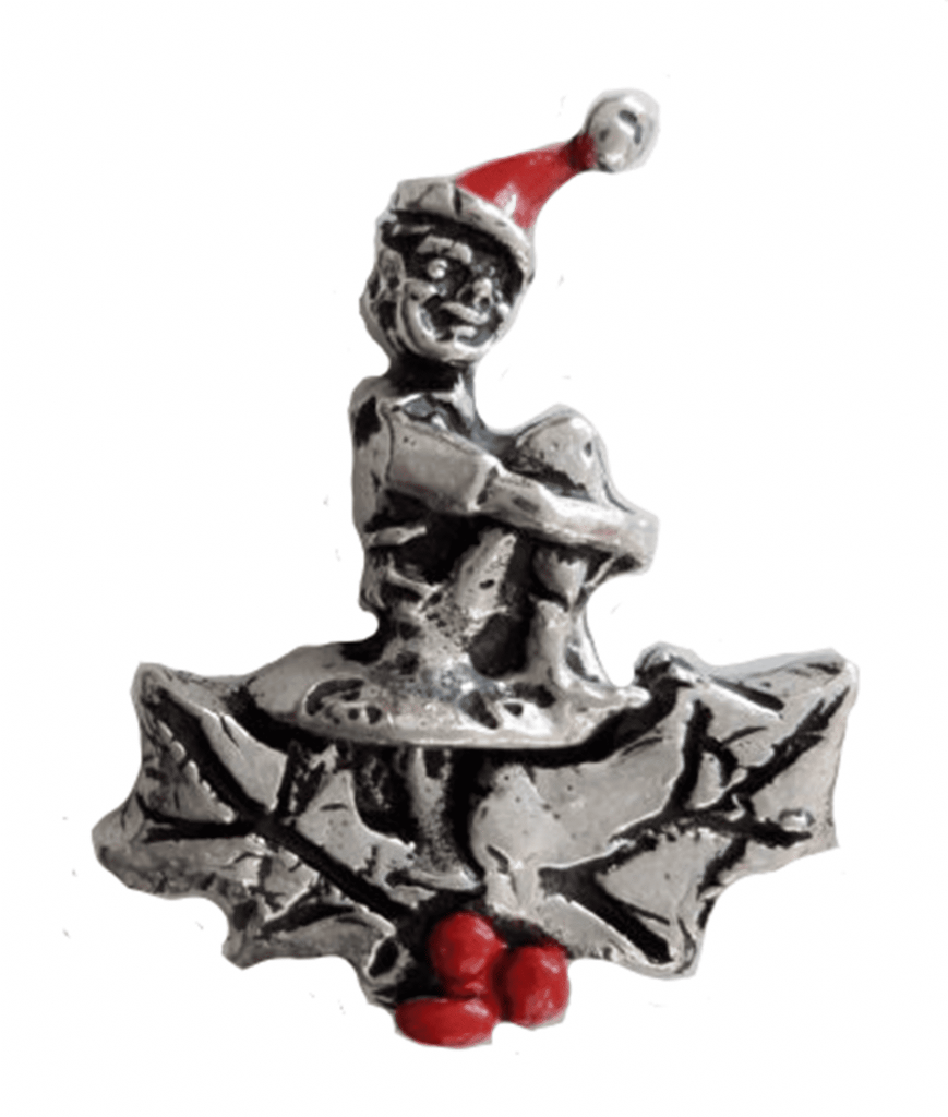 Cornish Christmas Pixie Piskey Pewter Pin Badge – Hand Made in Cornwall