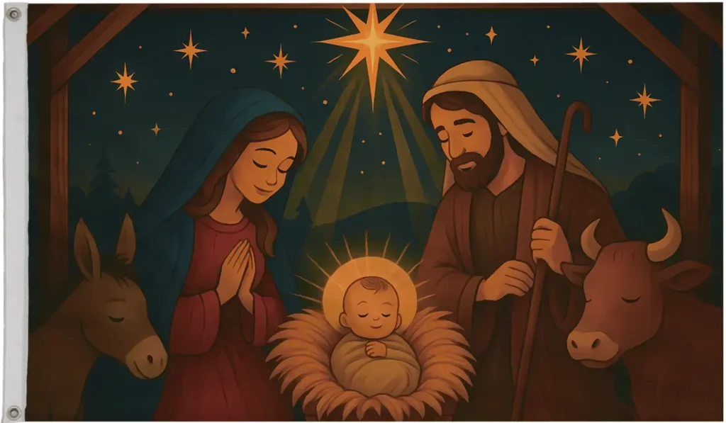 Christmas Nativity Scene Baby Jesus Polyester 5’x3′ Flag